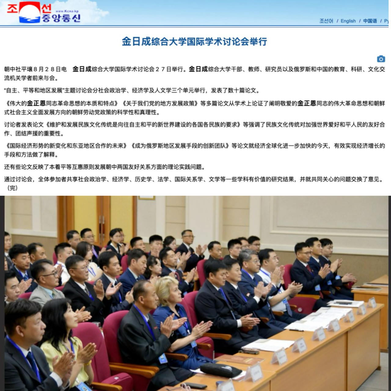 2025年8月25日—9月1日,应朝鲜金日成综合大学的邀请,吉林大学东北亚研究中心副主任张慧智教授、王箫轲教授、金慧贞老师出访朝鲜,参加金日成综合大学举办的“自主与平等、地区发展”国际学术研讨会。